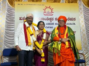 ಬೆಳಗಾವಿಯ ಲಕ್ಷ್ಮಿ ಟೆಕಡಿಯಲ್ಲಿರುವ ಹಿರೇಮಠದಲ್ಲಿ ಗೋವಾ ಕನ್ನಡ ಸಾಹಿತ್ಯ ಪರಿಷತ್ ಅಧ್ಯಕ್ಷ ಹಾಗು ಹೋರಾಟಗಾರ ಸಿದ್ದಣ್ಣ ಮೇಟಿ ಅವರಿಗೆ ಬೆಳಗಾವಿ ಡಾಕ್ಟರ್ ನಾಗನೂರ ಮಠದ ನುಡಿ ಶ್ರೀ ಪ್ರಶಸ್ತಿಗೆ ಭಾಜನರಾದ ಹಿನ್ನೆಲೆಯಲ್ಲಿ ಡಾಕ್ಟರ್ ಸಿದ್ದಣ್ಣ ಮೇಟಿ , ಶ್ರೀಮತಿ ನಿಲ್ಲಮ್ಮ ಮೇಟಿ ದಂಪತಿಗಳಿಗೆ ಆಶಿರ್ವದಿಸಿ ಮಾತನಾಡುತ್ತಾ ಸಿದ್ದಣ್ಣ ಮೇಟಿ ಅವರ ಕನ್ನಡದ ಕೆಲಸ ಮನಗಂಡು ಶ್ರೀ ಮಠ ಅವರಿಗೆ ನುಡಿ ಶ್ರೀ ಪ್ರಶಸ್ತಿ ನೀಡಿ ಗೌರವಿಸುತ್ತಿದೆ ಇನ್ನಷ್ಟು ಹೆಚ್ಚಿನ ಕನ್ನಡದ ಕೆಲಸವನ್ನು ಮಾಡಲಿ ಎಂದು ಆಶಿರ್ವದಿಸಿದರು.